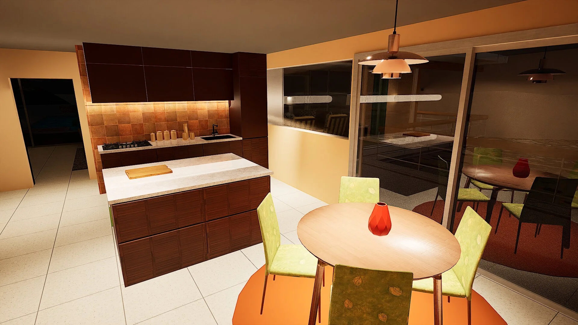 Kitchen rendering of the Steve McQueen house located in Palm Springs. Designed by Hugh Kaptur AIA, 1964.